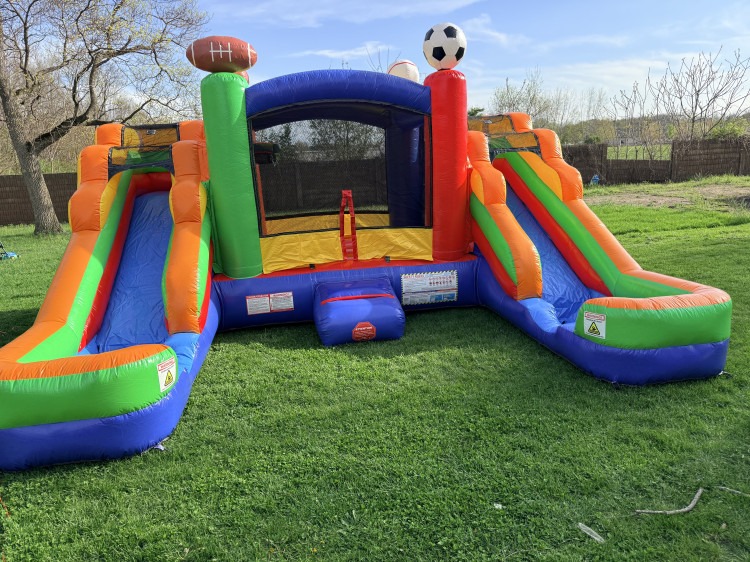 Sports Double Waterslide Wet/Dry Bounce House w/ Slide